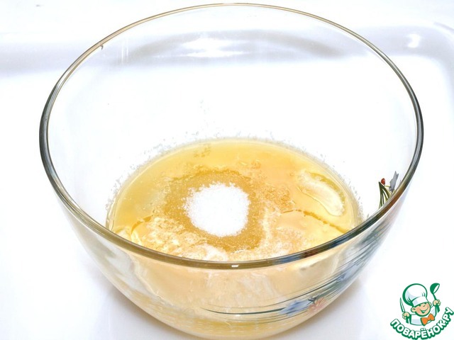 Готовим тесто. Кладём в миску размягчённое (но не подтаявшее) масло, желток одного яйца (белок оставим для начинки) и сахарную пудру.