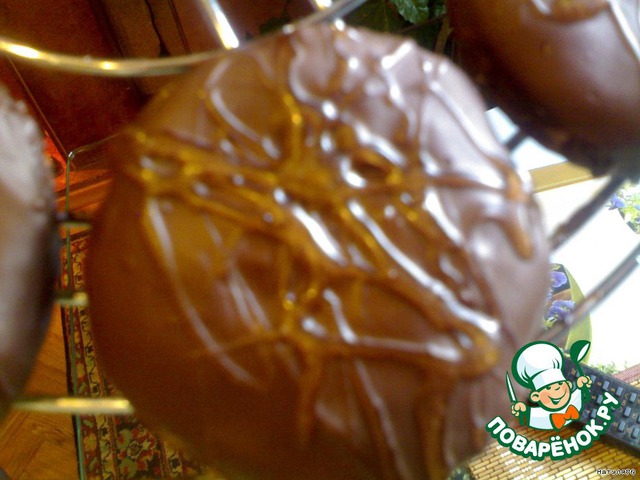 Теперь поливаем карамелью печенье, накладывая "медовые нити".