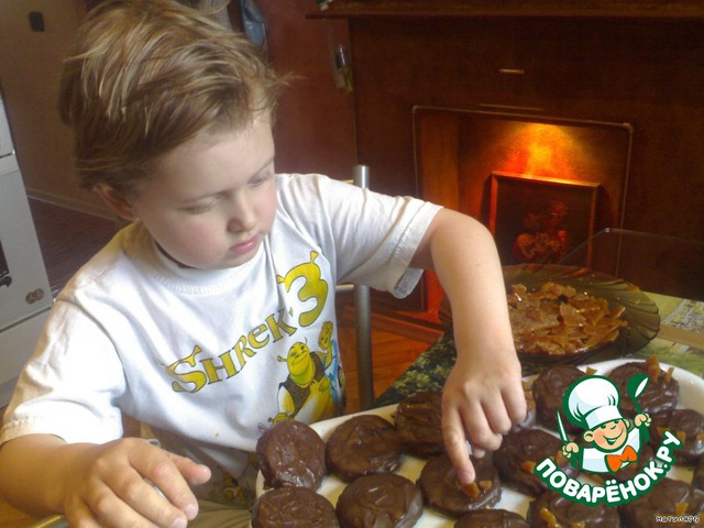 Выкладываем печеньки на решетку, чтобы шоколад застыл.