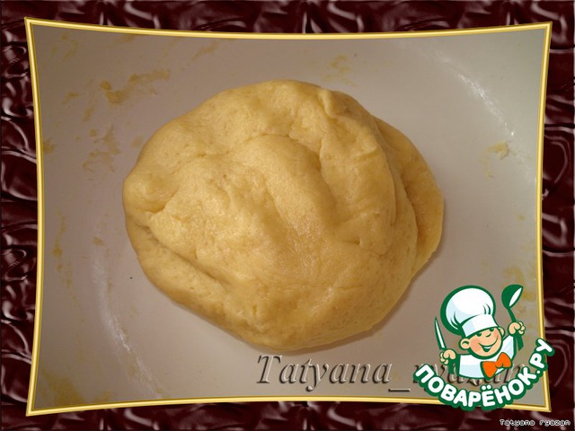 Смешайте муку, разрыхлитель, ванилин и сахар. Добавьте 3ст. л. сливочного масла, разотрите массу. Добавьте яйцо, замесите тесто. скатайте в шар, охладите.