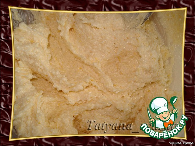 Для начинки 100г. сливочного масла взбейте с сахаром, добавьте измельчённую цедру 1-го лимона (можно вместо лимона использовать что-то другое например кокосовую стружку), перемешайте.