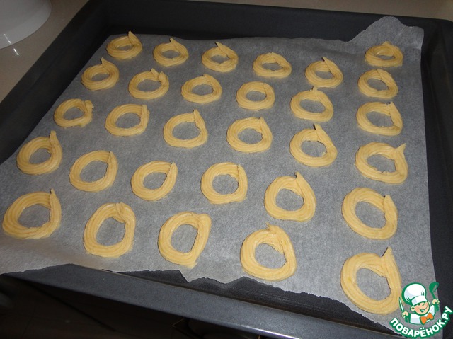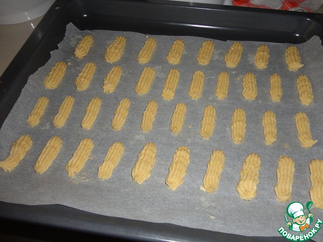 Берем кондитерский мешок и отсаживаем на противень длинненькие палочки.