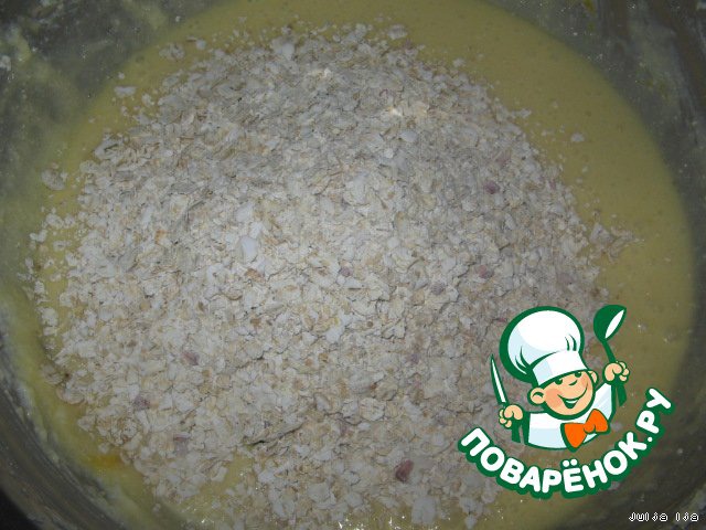 Добавляем овсяные хлопья. Они обязательно должны быть быстрого приготовления, такие, где на упаковке написано "Варить 3 минуты".