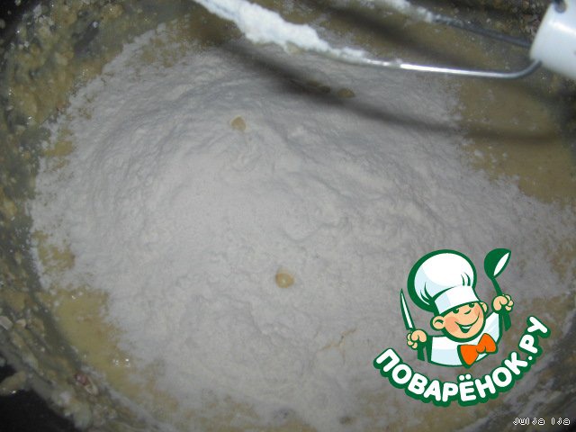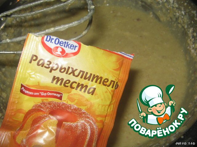 Добавляем разрыхлитель. Его, конечно, лучше смешать с мукой, но у меня это не получилось сделать *DONT_KNOW* Всё Мишка... Помощник!!! Весь стол занял!!!