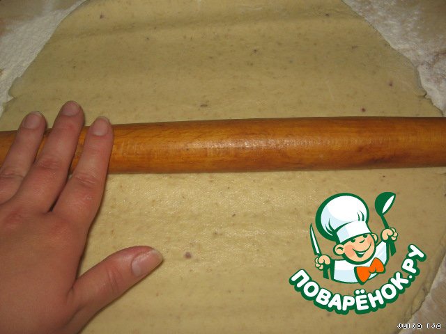 Раскатываем его на присыпанной мукой рабочей поверхности.