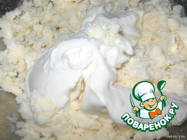 Теперь серьёзно. В растёртое масло добавляем сметану.