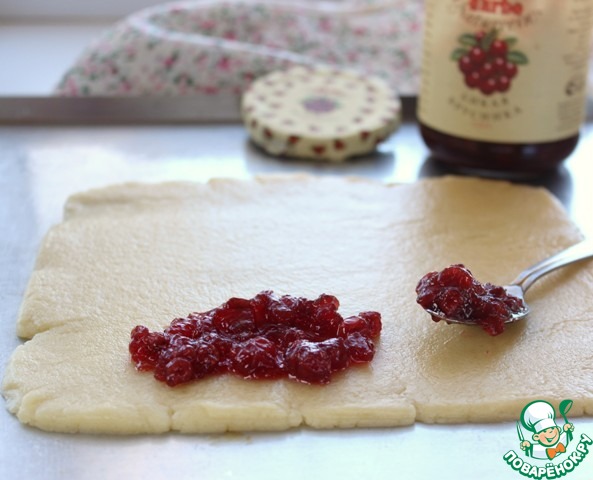 Выложить на тесто брусничный соус D'аrbo, равномерно распределить.
