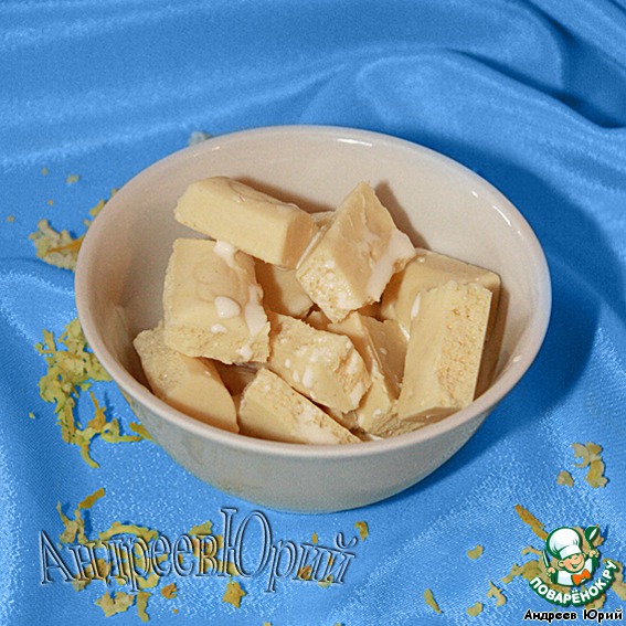 50 гр белого шоколада и 3 ст. л. сливок соединить и растопить в микроволновой печи за 1 минуту.