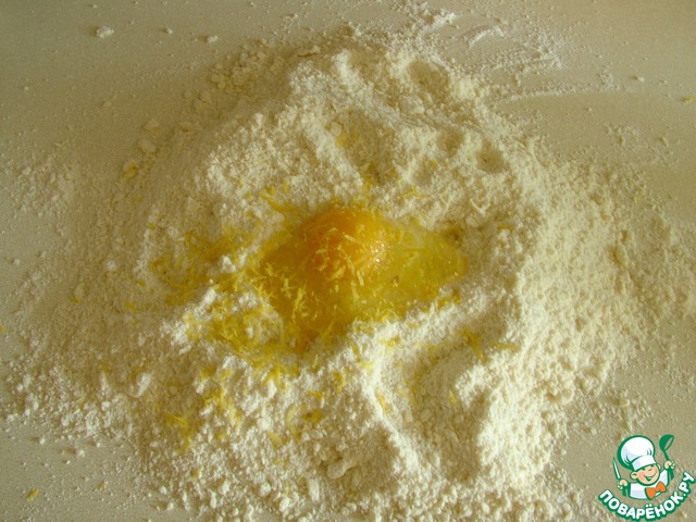 Добавляем яйцо, цедру апельсина и быстро замешиваем тесто. Если тесто не собирается, добавляем несколько ложек молока.