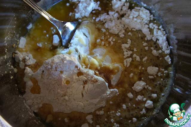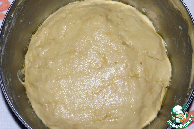 Растворите дрожжи и сахар в четверти стакана теплой воды. Как только дрожжевая смесь покроется шапочкой - добавьте ее в полностью остывшее тесто.
