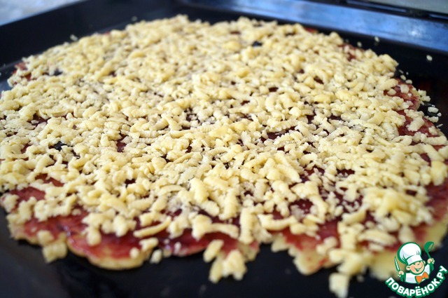 Затем поверх натираем охлажденное тесто. Ставим в разогретую до 180 градусов духовку, выпекаем 30 минут.