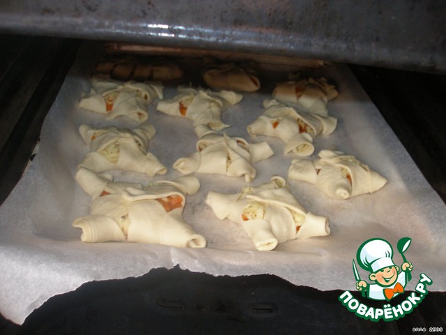 Духовку разогреть, на противень выложить конвертики с тыквой и отправить их в духовку на 20-25 минут (до готовности теста).