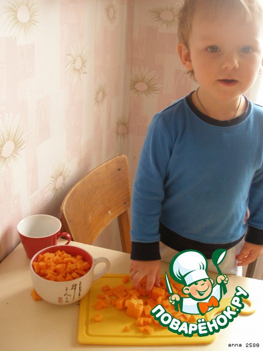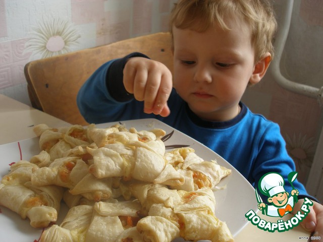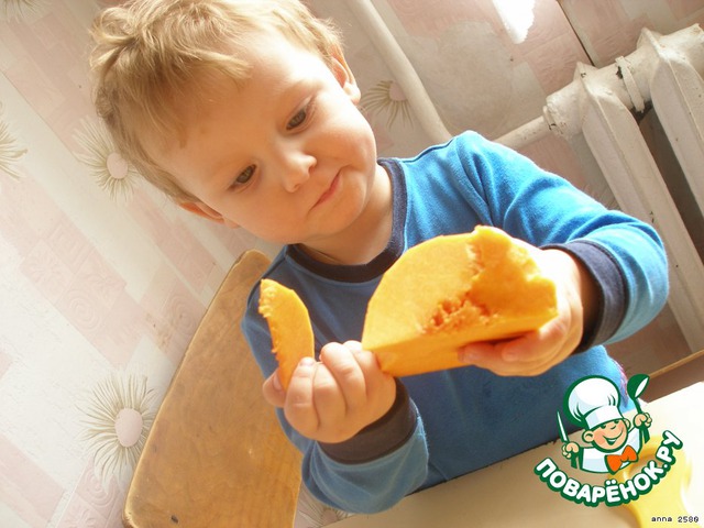 | Некоторые дети любят овощи и с удовольствием их едят. Мой малыш (ему сейчас 2 года и 3 мес.), к сожалению, не из их числа. Когда он был совсем маленьким, то тыквенное пюре у нас шло "на ура!". А вот сейчас, чтобы накормить моего Матвейку тыквой, приходится идти на разные ухищрения. Вот одно из них: слоеное печенье с тыквой. Вдвойне приятно есть то, что получается, когда готовишь с таким замечательным помощником! На конкурс "Silver line на радость детям" от Scarlett. |