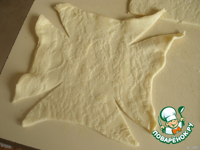 На квадратах теста сделать небольшие надрезы от угла к центру (но до середины квадрата не доходить!).
