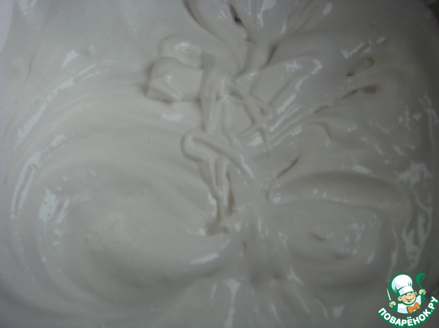Взбить белок с щепоткой соли, постепенно подсыпая сахарную пудру.