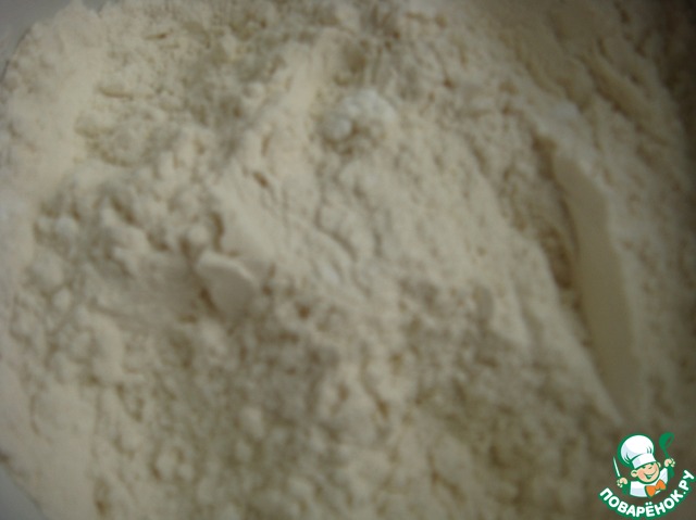 Смешать просеянные муку и крахмал.
