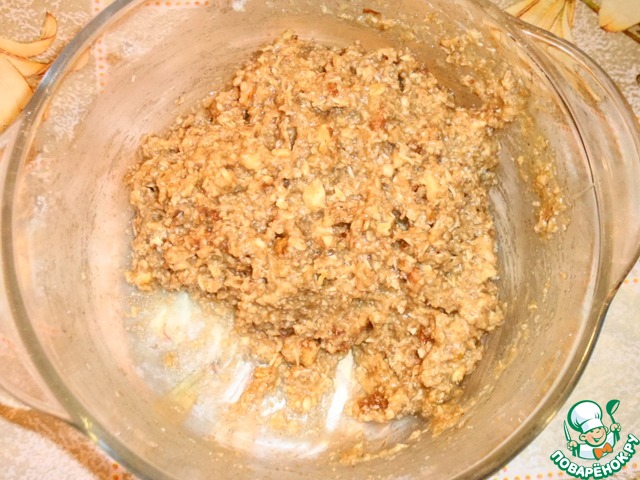 Смешайте в миске геркулес, муку, сахар, орехи.