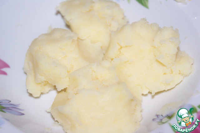 Отварить картофель, не солить. Полностью слить воду и растолочь в пюре.