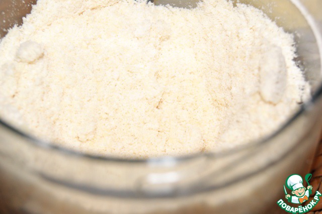 Миндаль 200 г пробить в блендере вместе с сахарной пудрой до состояния муки. Почему лучше молоть с пудрой? Так из миндаля не выделяется масло и смесь остается сухой и легкой.