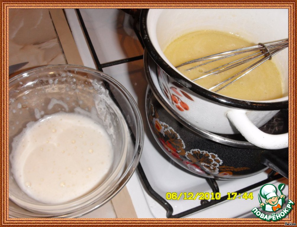 Добавить взбитое в пену яйцо и взбивать на водяной бане до загустения (около 3-4 минут).