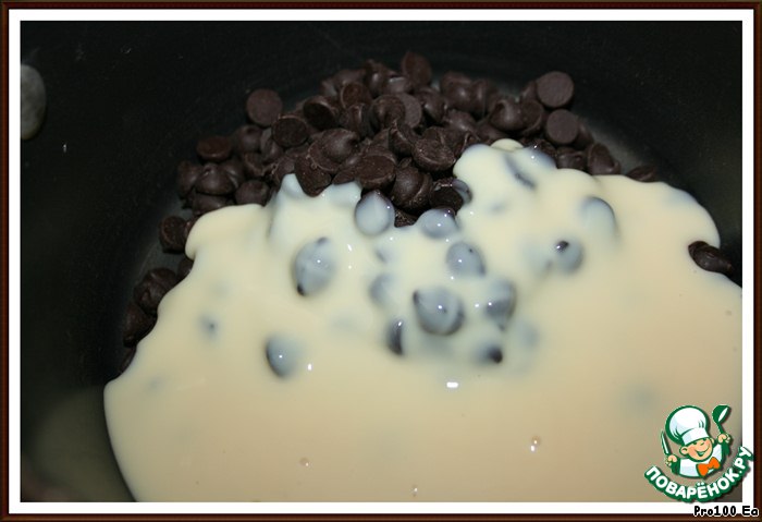 Соединить сгущенку с шоколадом.