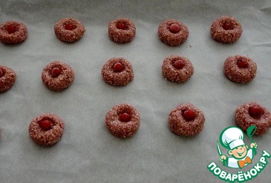 В серединке пальцем сделать углубление для ягоды, положить ягоду.