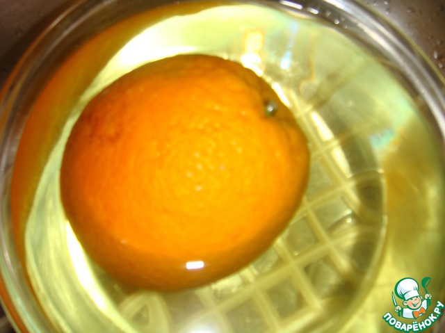 Апельсины хорошо вымыть, один очистить, второй положить в кипяток на 5 минут.