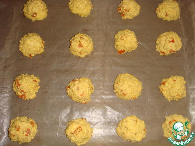 Противень застелить пергаментом для выпечки. Чайной ложкой выложить тесто на бумагу для выпечки на расстоянии друг от друга.