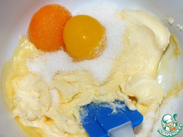 В чашке смешать яичные желтки, мягкое масло, сахар, соль, ванилин