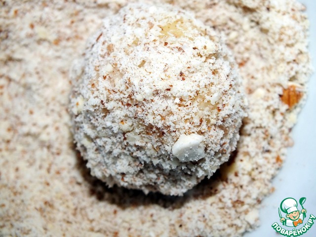 Затем обвалять в орехах (орехи предварительно измельчить)