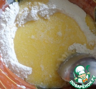 Для приготовления печенья нам необходимо смешать 1 стакан муки, сахар, разрыхлитель теста, ванилин и соль в одной посуде. Масло сливочное растопить и добавить в сухую смесь. Хорошо перемешать.