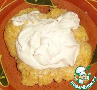 Добавляем сметану. Перемешиваем. Добавляем 1 стакан муки и замешиваем тесто.