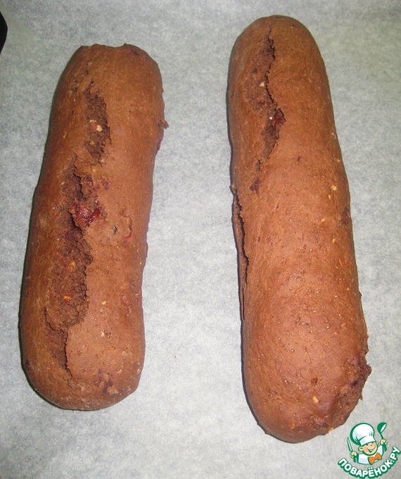 Застилаем противень бумагой для выпечки, укладываем наши будущие бискотти и ставим в разогретую до 180 градусов духовку на 30 минут.