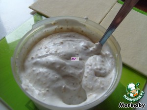 Начинаем колдовать - на треугольник намазываем белково-ореховую смесь.