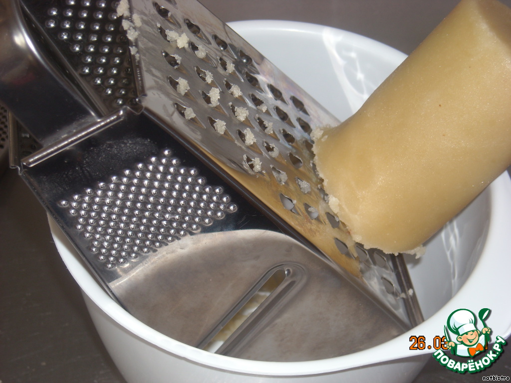 Натереть марципан на крупной терке.