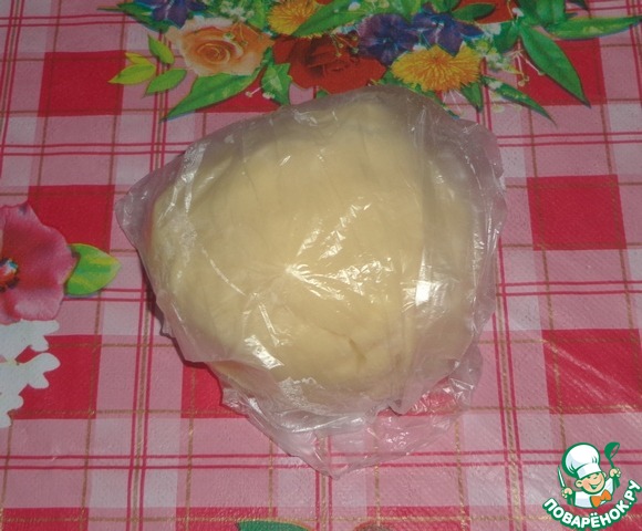 Приготовим песочное тесто: смешать муку и масло сливочное, затем добавить желток, сметану, сахар. Замесить тесто. Поставить в холодильник на 30 мин.