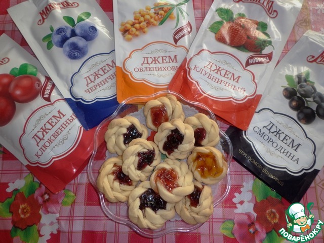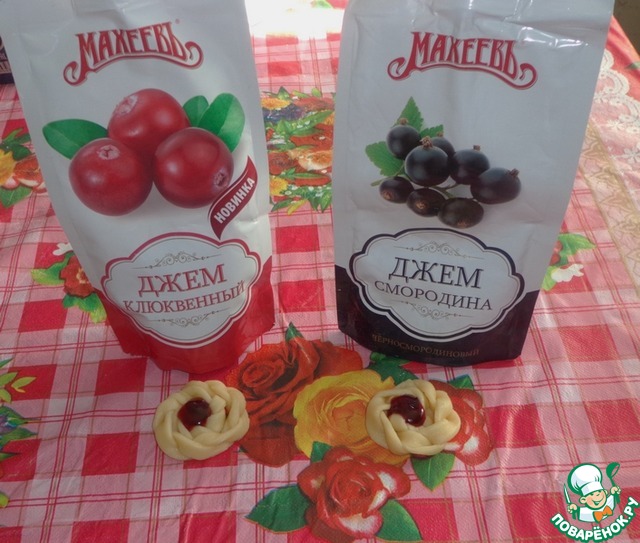 В серединку печенья кладем клюквенный и черносмородиновый джемы...