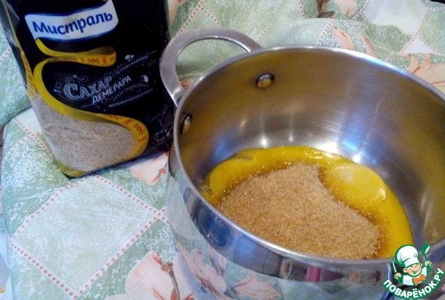 Разделите яйца на желтки и белки. Смешайте желтки с 70 граммами сахара. Взбейте.