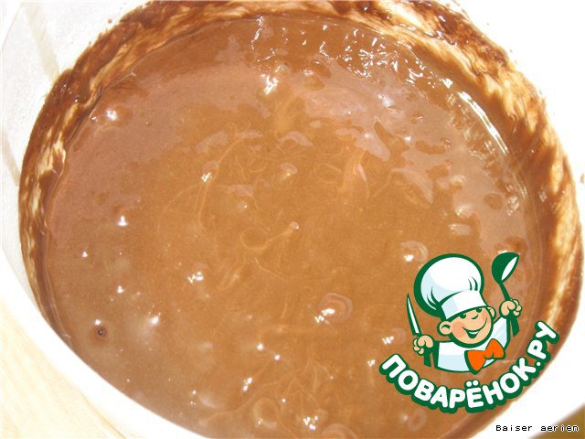 Выкладываем к получившейся массе шоколадно-масляную смесь. В последний раз все тщательно перемешиваем. Накрываем миску пищевой пленкой и убираем в холодильник на время подготовки формы. Тесто советуют убирать на час, а то и на ночь, но я половину смеси испекла сразу же, а половину спустя ночь; утром было сложнее выкладывать тесто, так как масло застыло, поэтому теперь я всегда выпекаю сразу.