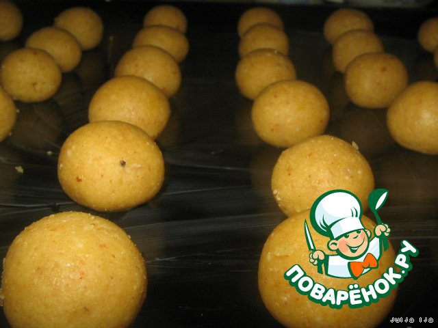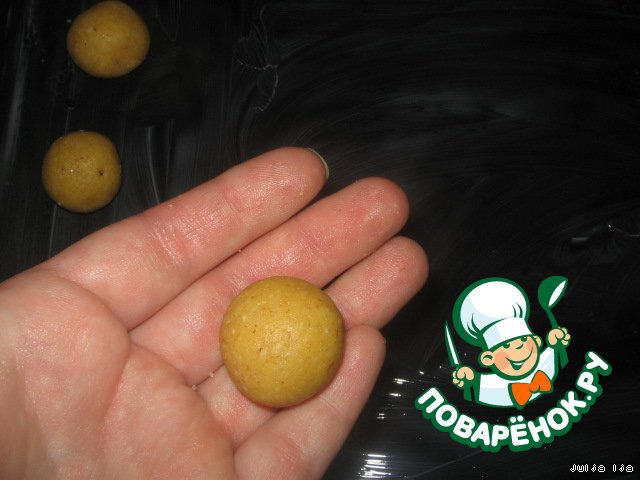 Через час достаём тесто. Лепим из него шарики размером с вишенку.