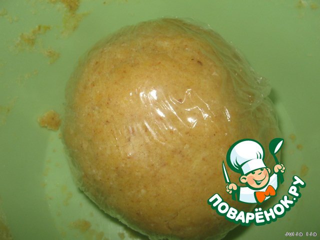 Слепленный нами колобок заворачиваем в пищевую плёнку и кладём в холодильник. На час.