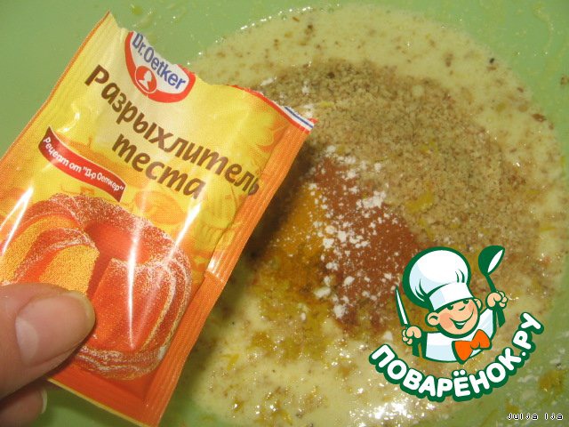 Теперь очередь специй. Кладём щепотку перца чили, гвоздики на кончике ножа, шафран. И разрыхлитель для теста.