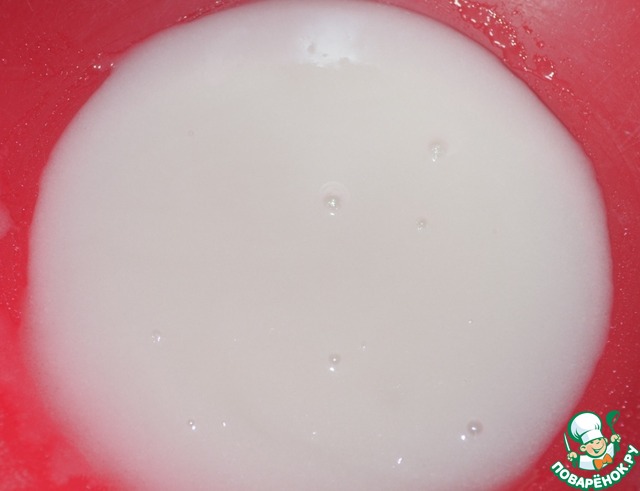 Смешать сухую и жидкую части теста, хорошо перемешать.
