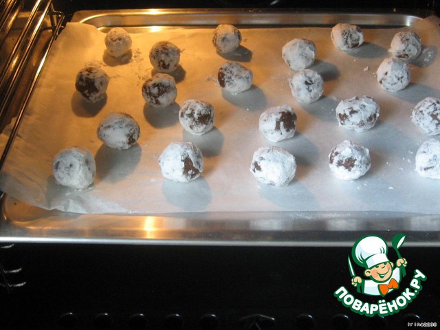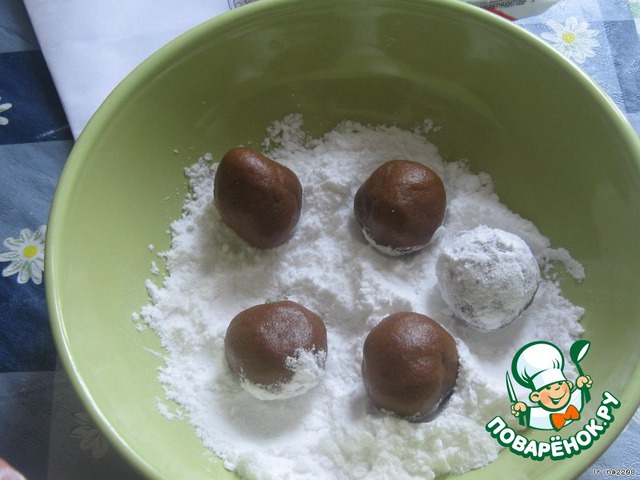 Скатать небольшие шарики из теста и обвалять их в сахарной пудре