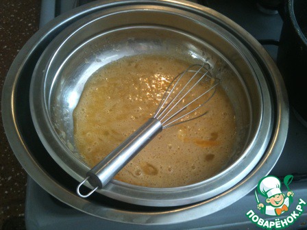 Яйца с сахаром перемешать. Поставить миску на водяную баню, постоянно помешивая до тех пор, пока не растворится сахар.