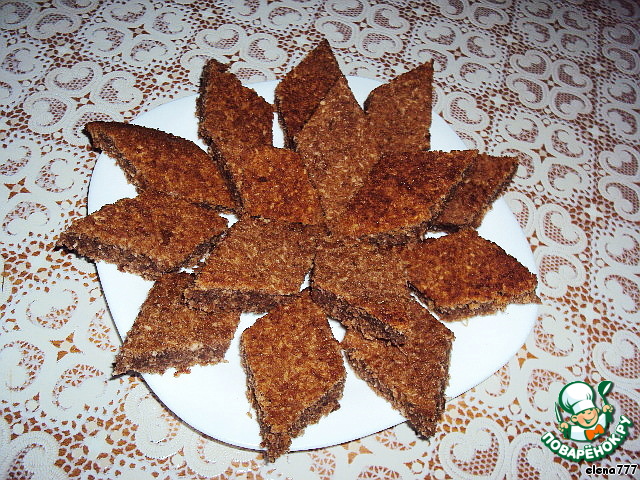 Основу остудить в форме, перевернуть на блюдо, снять бумагу и порезать на ромбики-печеньки.