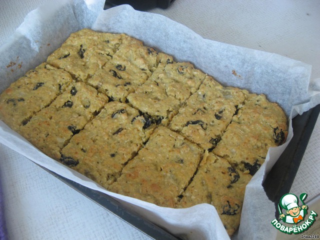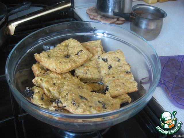 Готовое печенье горячим аккуратно нарезать на квадратики.