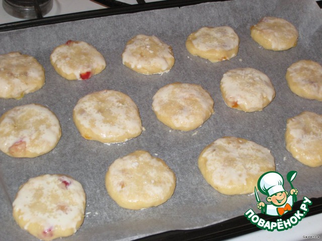 | Ванильные печенюшки на основе сливок, очень нежные и мягкие внутри. А кисло-сладкие вяленые вишни и цитрусовые придают ароматную фруктовую нотку. Очень вкусное ароматное печенье, просто лакомство для детишек, а приготовление не займет труда и много времени. |