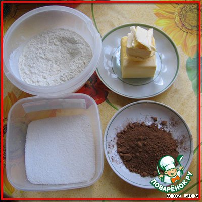 Итак, порубили маргарин, засыпали мукой, перетираем руками. Добавили какао и сахар, продолжаем мять тесто. Должен получиться комочек. Его убираем в холодильник. Можно накануне, можно на часок. Тесто не портится 2-3 дня, не волнуйтесь.