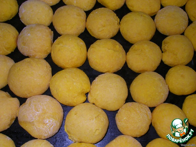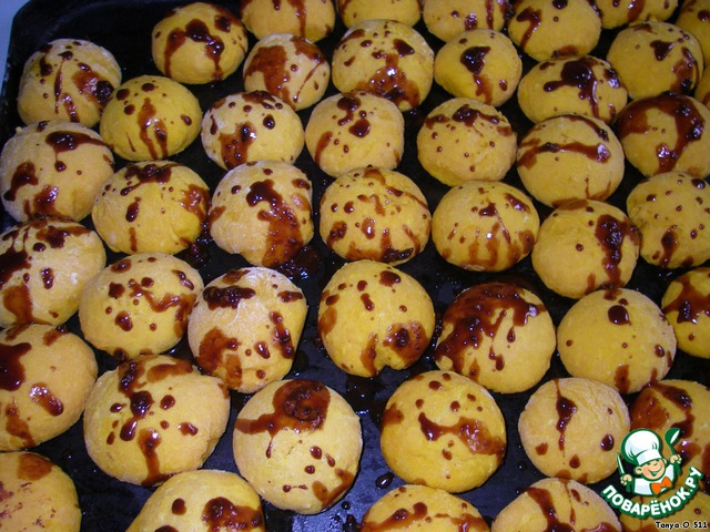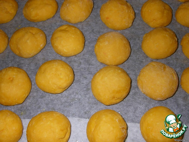 Сформировать небольшие шарики и выложить на противень, застеленный пергаментом.